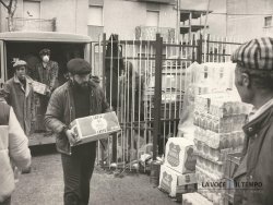 Acquisto foto "Volontari trasportano viveri per i terremotati"