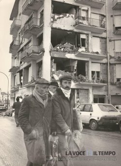 Acquisto foto "Terremotati davanti ad un palazzo crollato dopo il terremoto in Irpinia"
