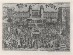 Acquisto foto "Antica stampa raffigurante l'ostensione della Sindone in piazza"