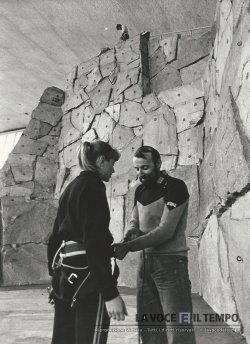Acquisto foto "Sistemazione dell'imbragatura prima di iniziare l'arrampicata a Palazzo a vela"