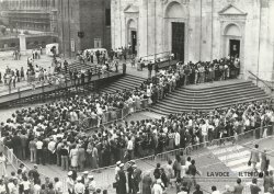 Acquisto foto "Folla in coda all'ingresso in Duomo, tra le transenne, dall'alto"