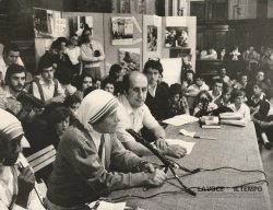 Acquisto foto "Madre Teresa di Calcutta e Ernesto Olivero in un incontro a Torino"