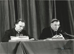 Acquisto foto "Il Cardinale Saldarini al Sinodo con don Bossù"