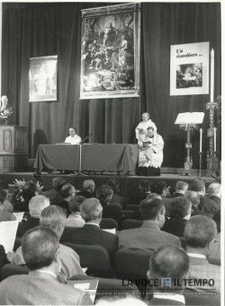 Acquisto foto "ll Cardinale Arcivescovo Giovanni Saldarini ad una liturgia nel corso del Sinodo diocesano con don Mario Vaudagnotto e don Bossù"