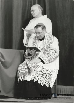 Acquisto foto "Il Cardinale Arcivescovo Giovanni Saldarini ad una liturgia nel corso del Sinodo diocesano con don Mario Vaudagnotto"