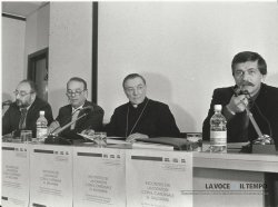 Acquisto foto "Conferenza all'Unione Industriale di Torino per il Sinodo: don Gianni Fornero, il Cardinale Saldarini e Tom Dealessandri "