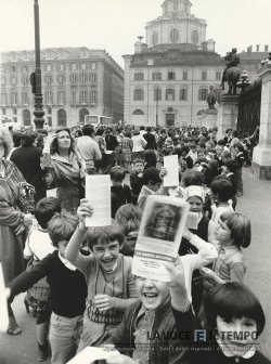 Acquisto foto "Bambini al termine della visita, in piazza Castello"