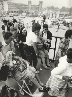 Acquisto foto "Signore anziane all'ingresso riservato per anziani e malati"
