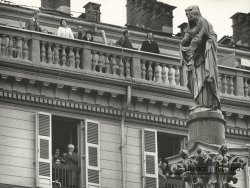 Acquisto foto "Folla alle finestre durante la visita del papa"