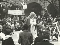 Il Papa osserva la folla in piedi sulla papamobile durante la visita a Torino | € 0,00 |