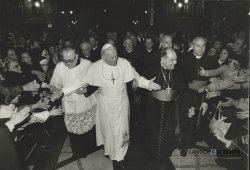 Acquisto foto "Giovanni Paolo II cammina in chiesa salutando la folla di fedeli"