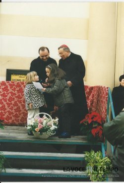 due bambine insieme a don marco, prete della parrocchia di valle sauglio salutano e porgono gli auguri di compleanno al cardinale saldarini. | € 0,00 |