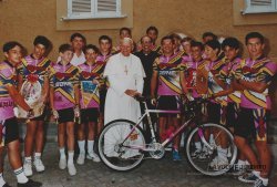 Acquisto foto "Il papa Giovanni Paolo II con un gruppo di ciclisti"