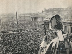 Acquisto foto "Il papa Giovanni Paolo II guarda la folla in piazza San Pietro"