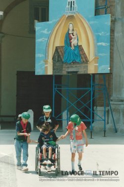 Acquisto foto "Bambini in pellegrinaggio a Loreto, accompagnano una compagna disabile"