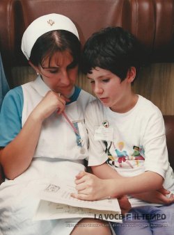 Acquisto foto "Una bimba e una volontaria dell'Unitalsi giocano insieme sul treno"