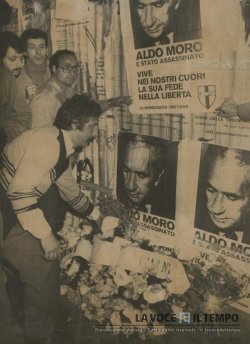 Fiori e manifesti con l'immagine di Aldo Moro, in via Caetani, nel luogo dove è stata ritrovata l'auto con il corpo del Presidente della Democrazia Cristiana | € 20,00 |
