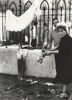 Attentatocontro i bambini alla Sinagoga di Roma, una donna depone fiori sul luogo dell'attentato | € 20,00 |