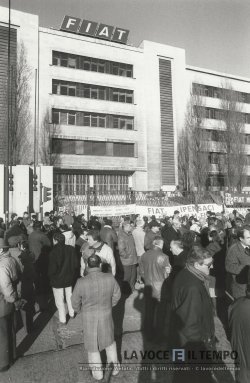 Acquisto foto "Impiegati e operai Fiat davanti allo stabilimento di Mirafiori"
