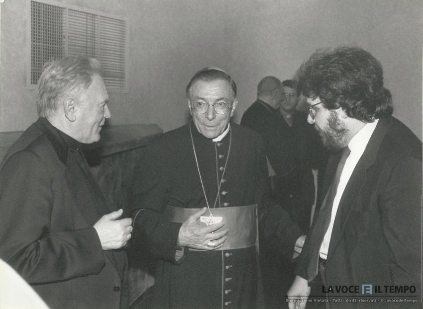 Il Cardinale Arcivescovo Giovanni Saldarini, con mons. Franco Peradotto e il politico Lido Riba