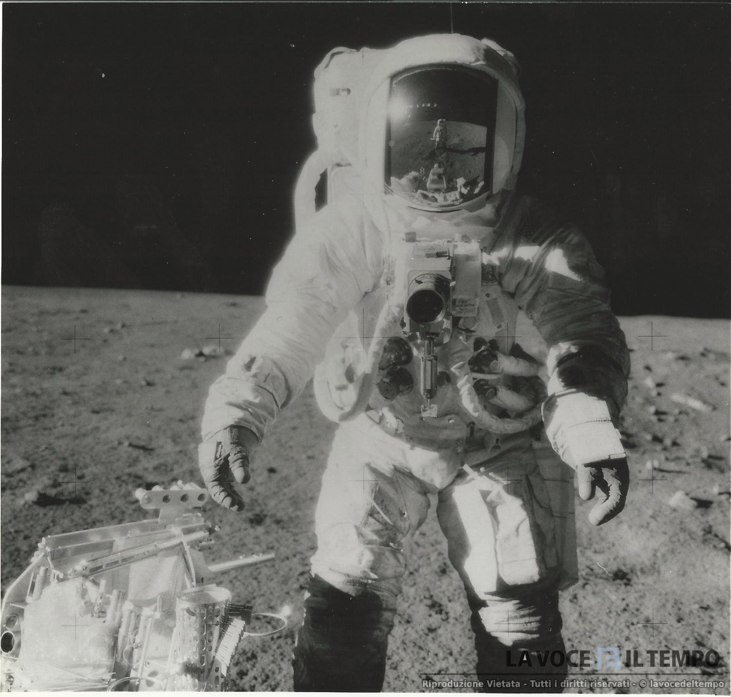 astronauta con un Hasselblad Camera Apollo 12