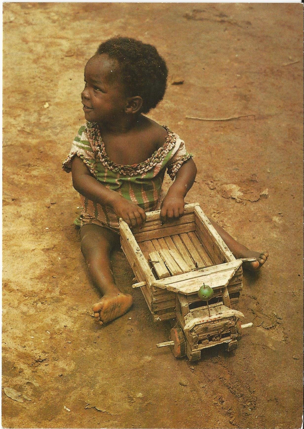 bambina africana che gioca con camioncino di legno