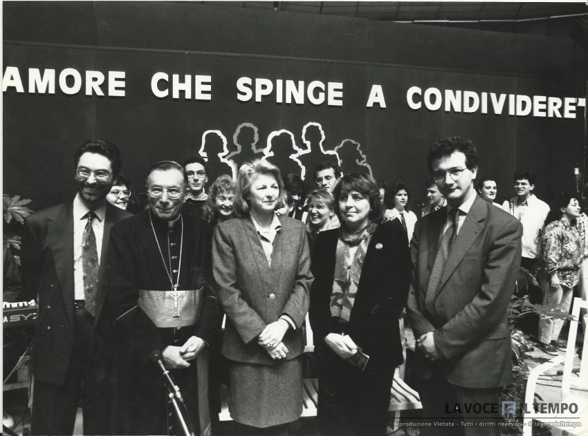 Il Cardinale Saldarini al Palasport con Cattaneo, Angeleri e Giampiero Leo