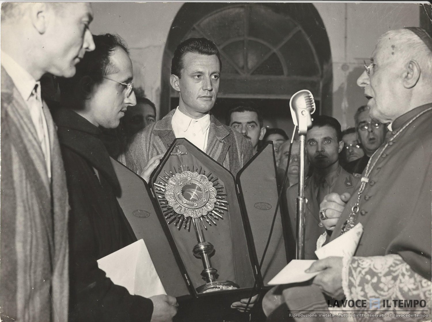 Il Cardinale Arcivescovo Maurilio Fossati riceve in dono una pisside