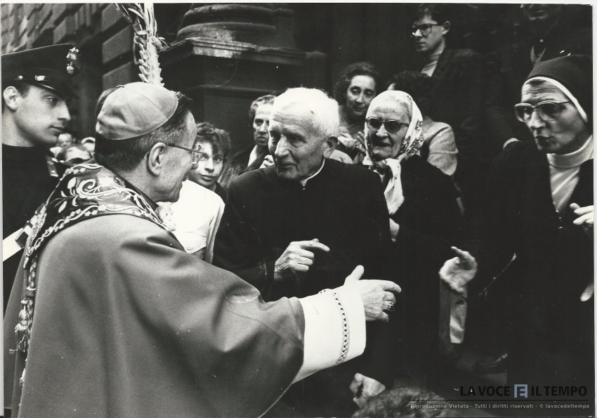 il cardinale saldarini parla con Don Borgarello