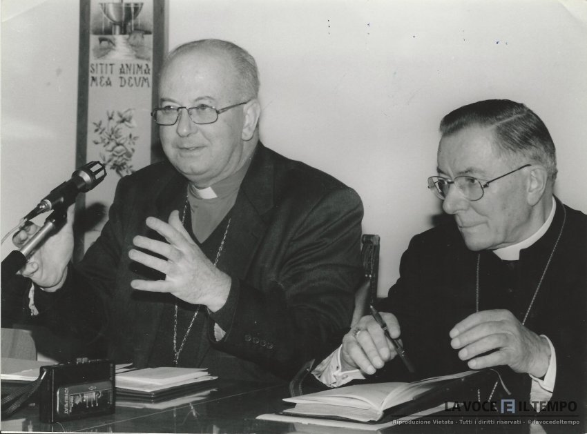 il cardinale saldarini tiene un incontro con i politici insieme al monsignor Attilio Nicora