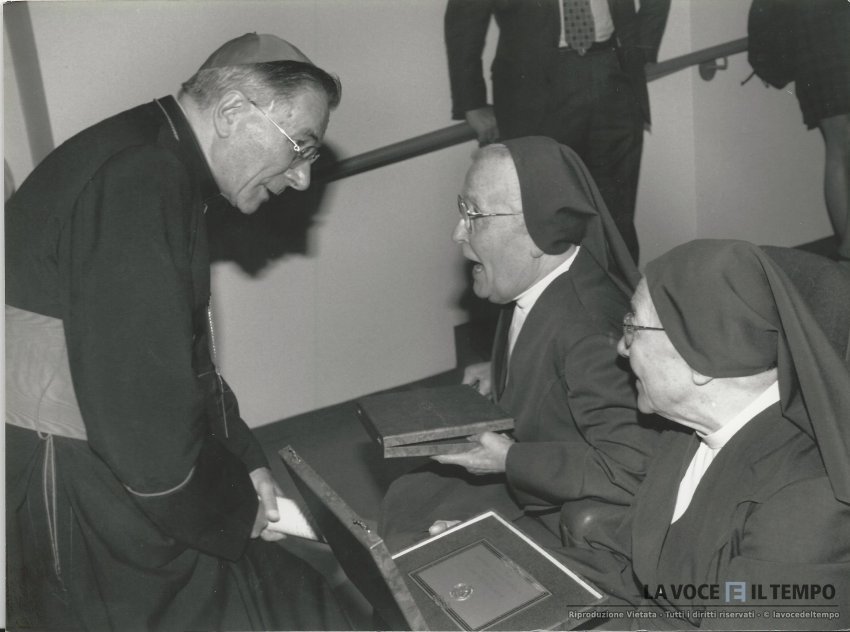 il cardinale saldarini parla con suore salesiane