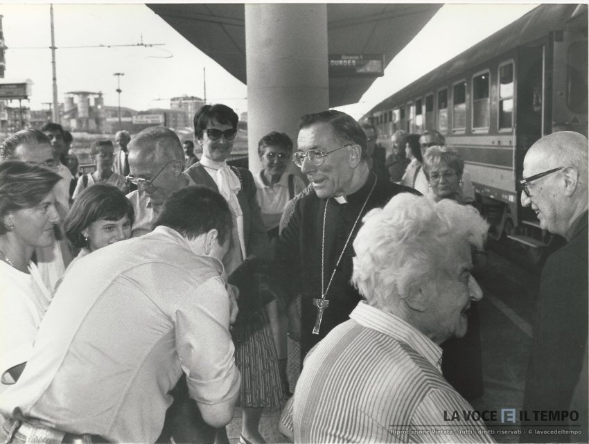 un passeggero bacia la mano del cardinale saldarini