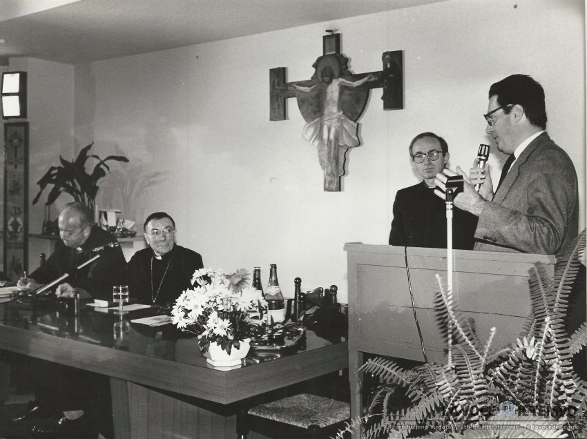 il cardinale saldarini ascolta il discorso di Rossi di montelera