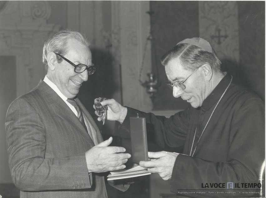 il cardinale saldarini dà un premio a Domenico Agasso, ex direttore Nostro Tempo