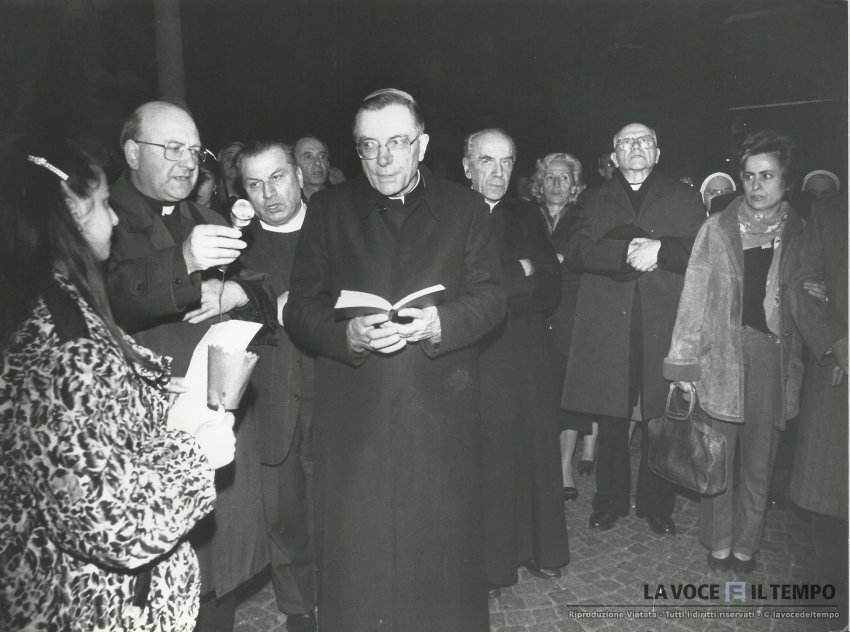 il cardinale saldarini legge il vangelo tra la folla