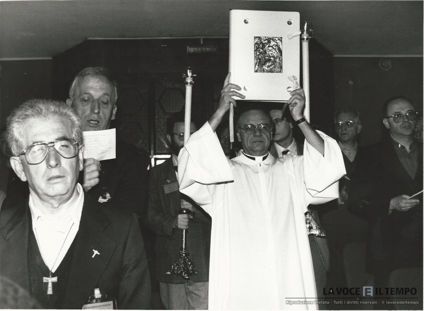 il cardinale giovanni saldarini apre il sinodo torinese con don gianni mondino