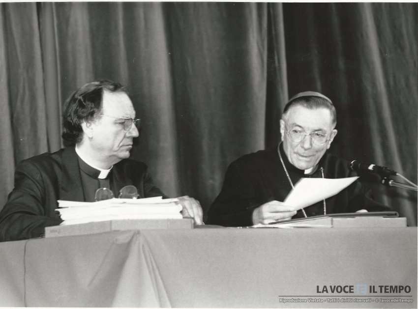 il cardinale giovanni saldarini apre il sinodo torinese con don giovanni carrù