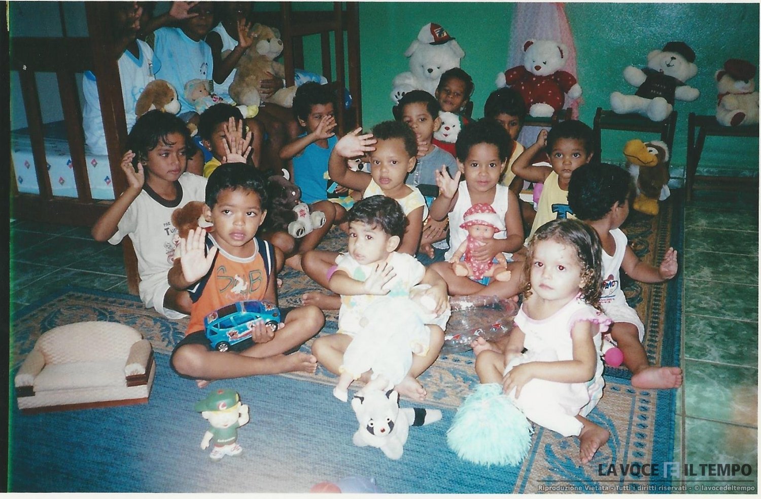 i più piccoli della casa famiglia "Pinardi" che salutano e giocano, in Brasile