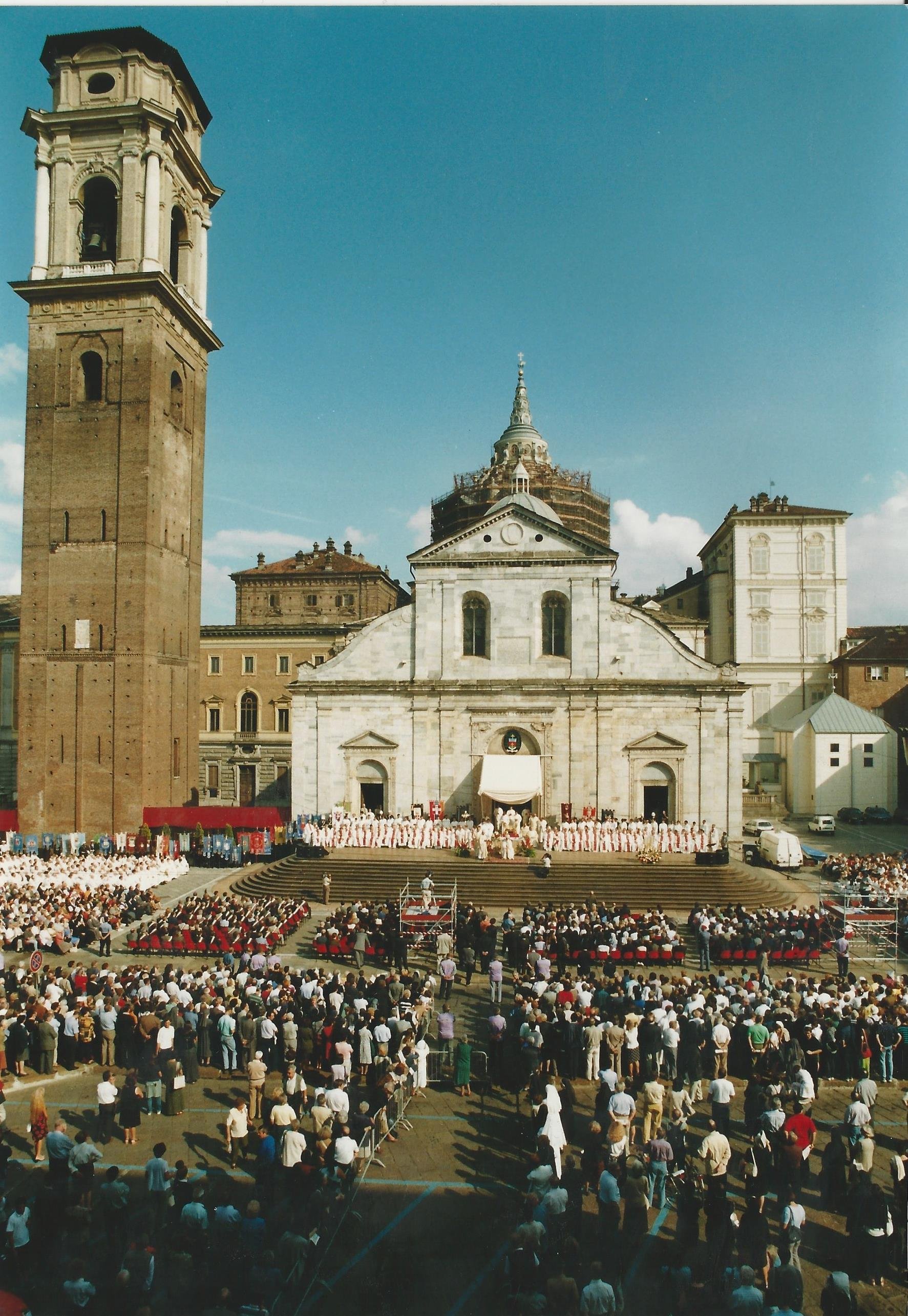 fedeli raccolti per celebrare l'ostensione della sindone