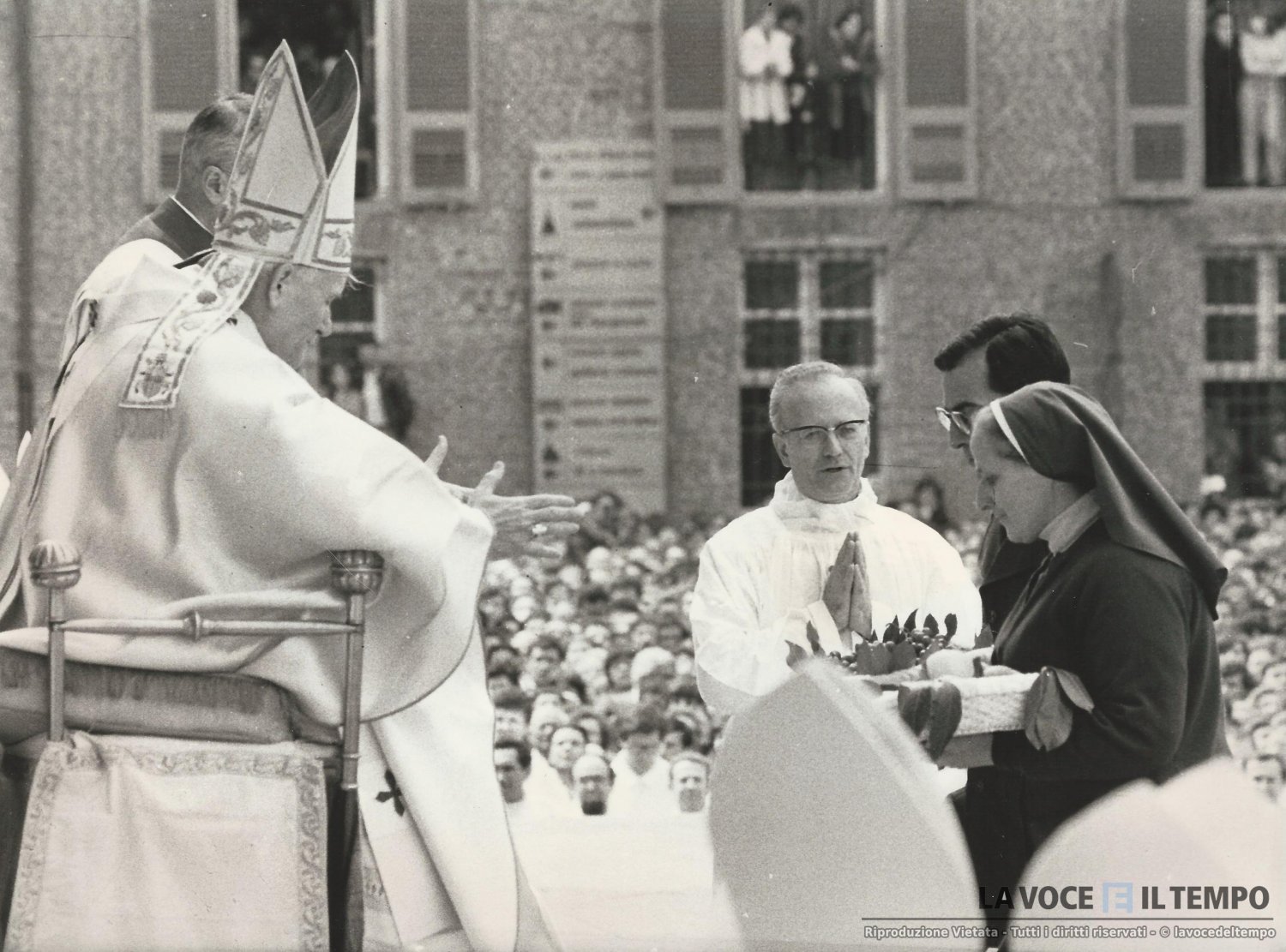 Il papa Giovanni Paolo II e una suora durante l'Offertorio