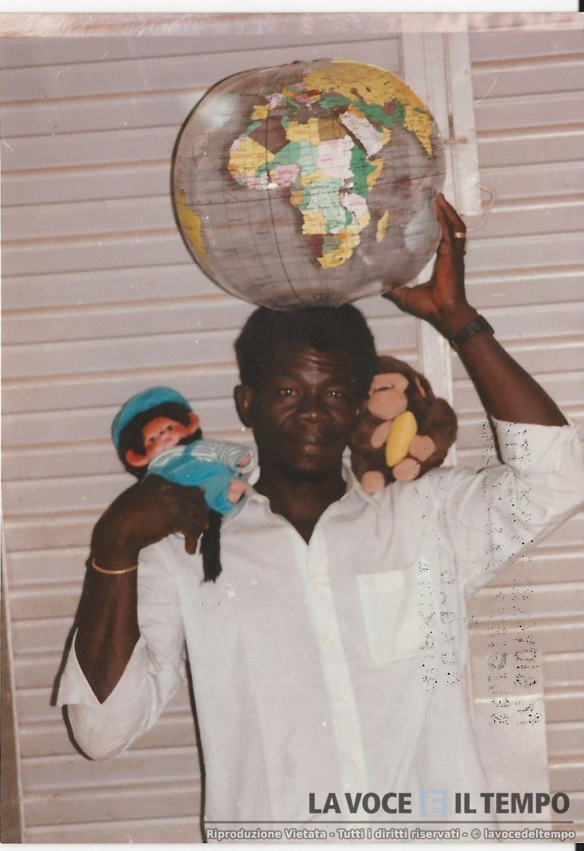 Un ragazzo africano porta il mappamondo, in testa, inviato dal centro missionario diocesano di torino nel Centro Medico St. Camille in Burkina Faso