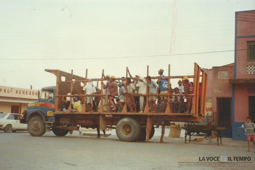 Cortatori di canna al ritorno dal lavoro nell'Alagoas Brasile . Anche oggi, alle soglie del 2000 esistono gli schiavi. Joaquim Gomes.