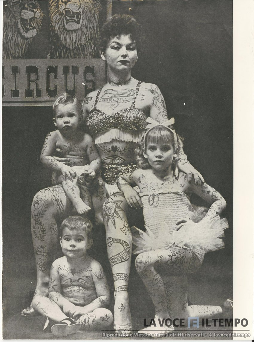 Una donna con alcuni bambini in una evoluzione circense