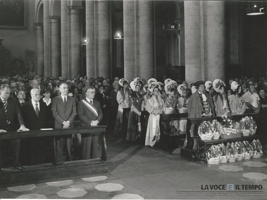 Autorità pubbliche e rappresentanti in costume tradizionale alla festa di San Giovanni nel corso della celebrazione eucaristica in Duomo