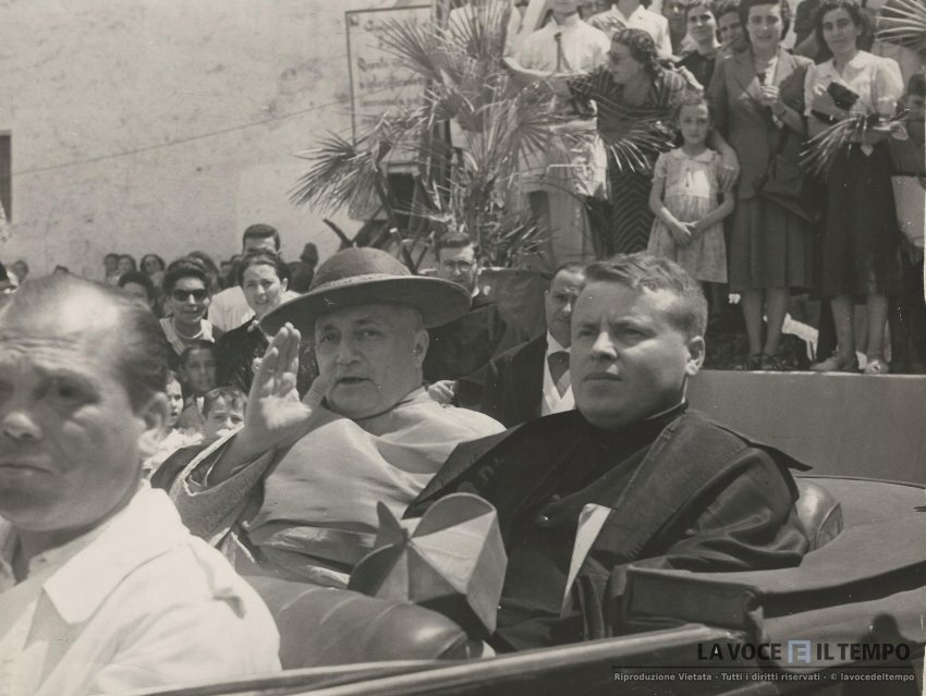 Il Cardinale Aloisi Masella e don Ottorino Rolando, parroco di Gesù Nazareno, a Bari nel 1949, durante le Solenni Celebrazioni Mariane