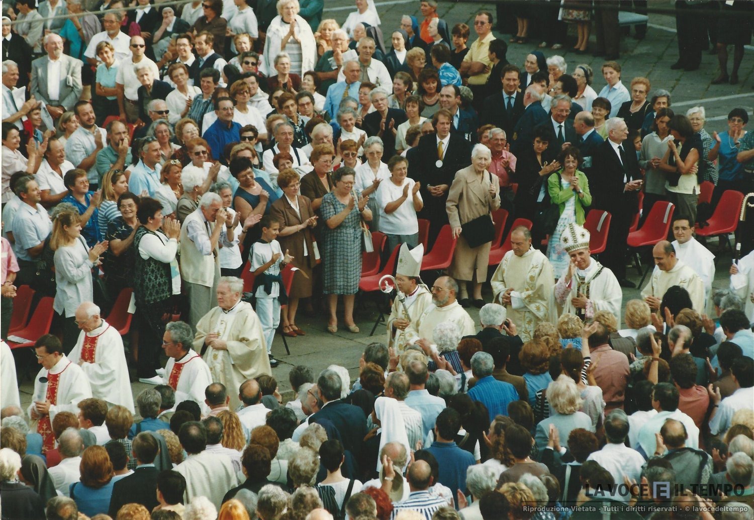 Il cardinale Saldarini attraversa due ali di folla che applaude