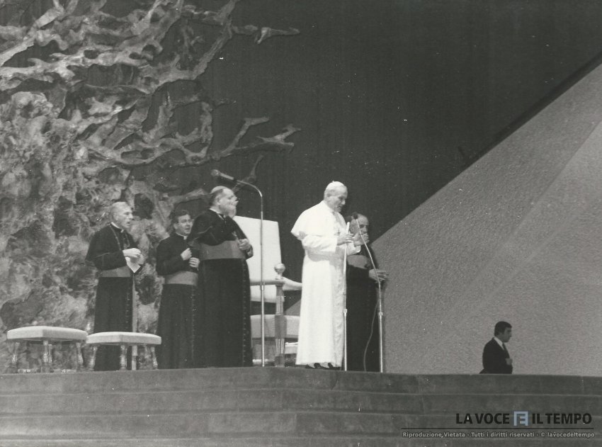 Il papa Giovanni Paolo II durante l'udienza in sala Nervi, a Roma