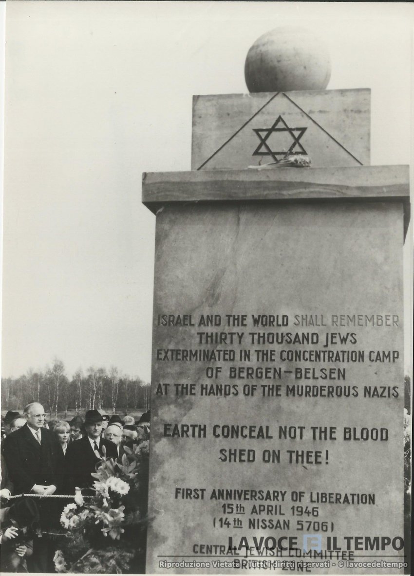 Il presidente della Repubblica federale di Germania, Richard von weizsacker ed il cancelliere federale Helmut Kohl durante la cerimonia di commemorazione della liberazione del campo di concentramento di Bergen-Belsen, raggiunto dalle truppe inglesi il 21 Aprile 1945.