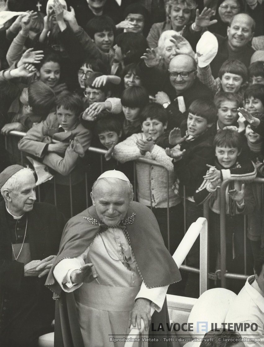 Il papa Giovanni Paolo II saluta la folla nelle vie della città