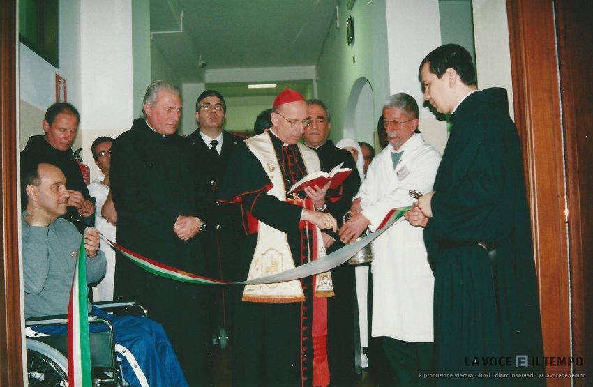 Il cardinale Poletto durante la benedizione, nel corso dell'inaugurazione del nuovo reparto di Degenza, medicina fisica e riabilitazione del Fatebenefratelli di San Maurizio Canavese